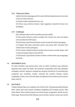 A Hantaran bahu b Hantaran lantun c Hantaran aras dada d Hantaran lompat e Hantaran sisi. Pj Tahun 2 itaadam. Kemahiran gerak kaki penting semasa seseorang itu menerima bola sebelum dihantar kepada rakan sebelum menjaringkan gol atau semasa menangkap bola di udara.